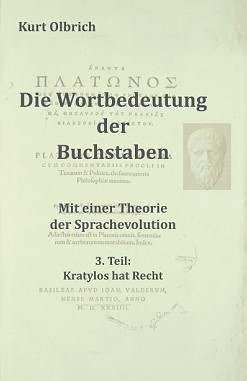 Kurt Olbrich Die Wortbedeutung der Buchstaben Mit einer Theorie der Sprachrevolution 3. Teil: Kratylos hat Recht 252 Seiten, Paperback, kaschiert, 24x16 cm Preis: 24,80 € |